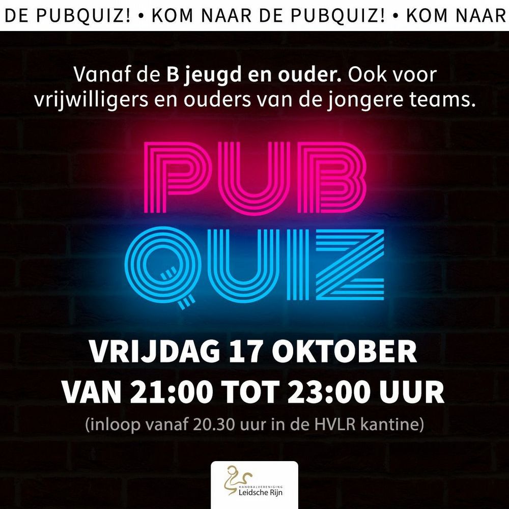 Zet in je agenda: 17 oktober van 21:00 tot 23:00 uur weer onze befaamde Pubquiz